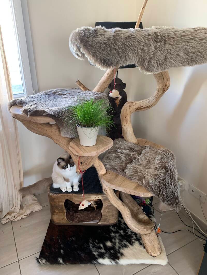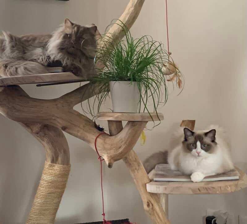 J'aime beaucoup ce modèle. Je recherche un arbre dans ce style pour mes 2 maines coon